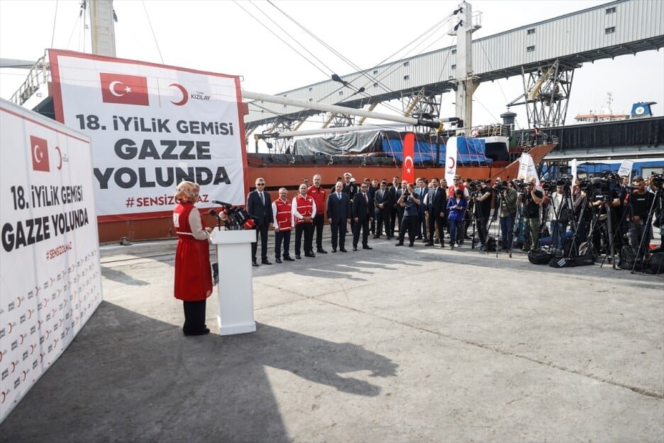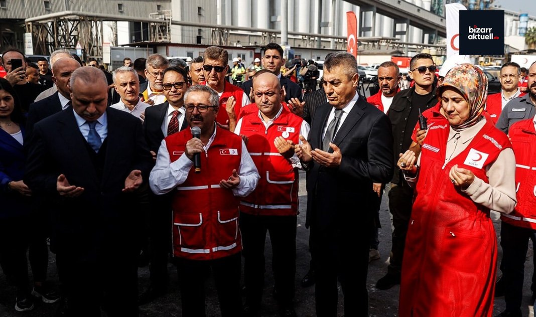 Das humanitäre „Schiff der Güte“, betrieben vom Türkischen Roten Halbmond, ist heute nach einer offiziellen Zeremonie aus dem Hafen von Mersin ausgelaufen, um Hilfe nach Gaza zu bringen.