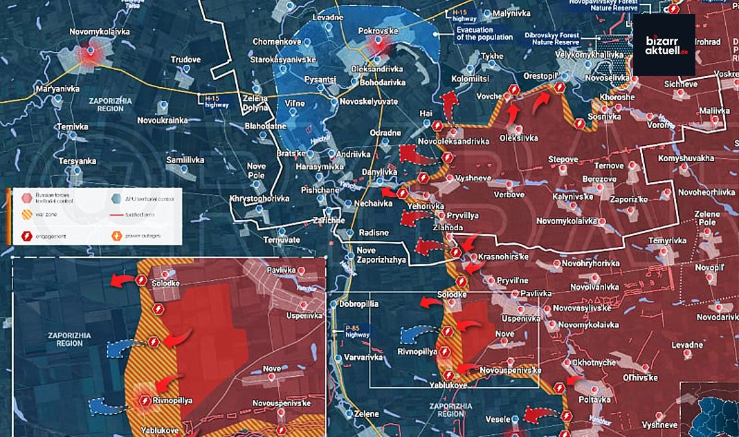 Nachdem die russischen Streitkräfte die Stadt Pokrowsk im Gebiet Donezk nahezu vollständig eingenommen haben, steht den Ukrainern nun eine neue Gefahr bevor: Auch der Fall der Stadt Huljajpole in der Region Saporischschja ist möglich. Damit zeigen die Russen, dass sie trotz großer Verluste weiterhin genug Kräfte haben, um die Ukrainer entlang der gesamten Frontlinie zu „verstreuen“.